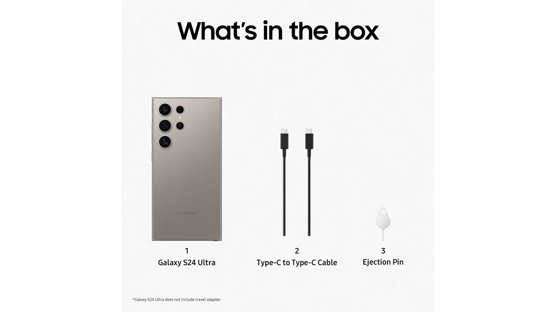 Fjernelsesværktøj til SIM-kort, S Pen, USB-C til USB-C kabel