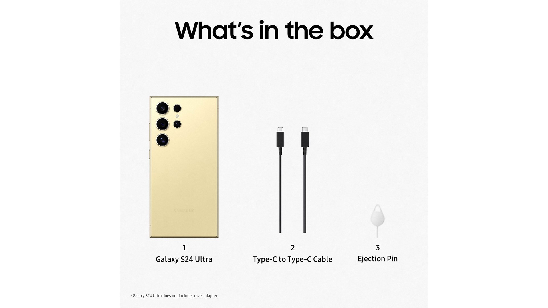 Fjernelsesværktøj til SIM-kort, S Pen, USB-C til USB-C kabel