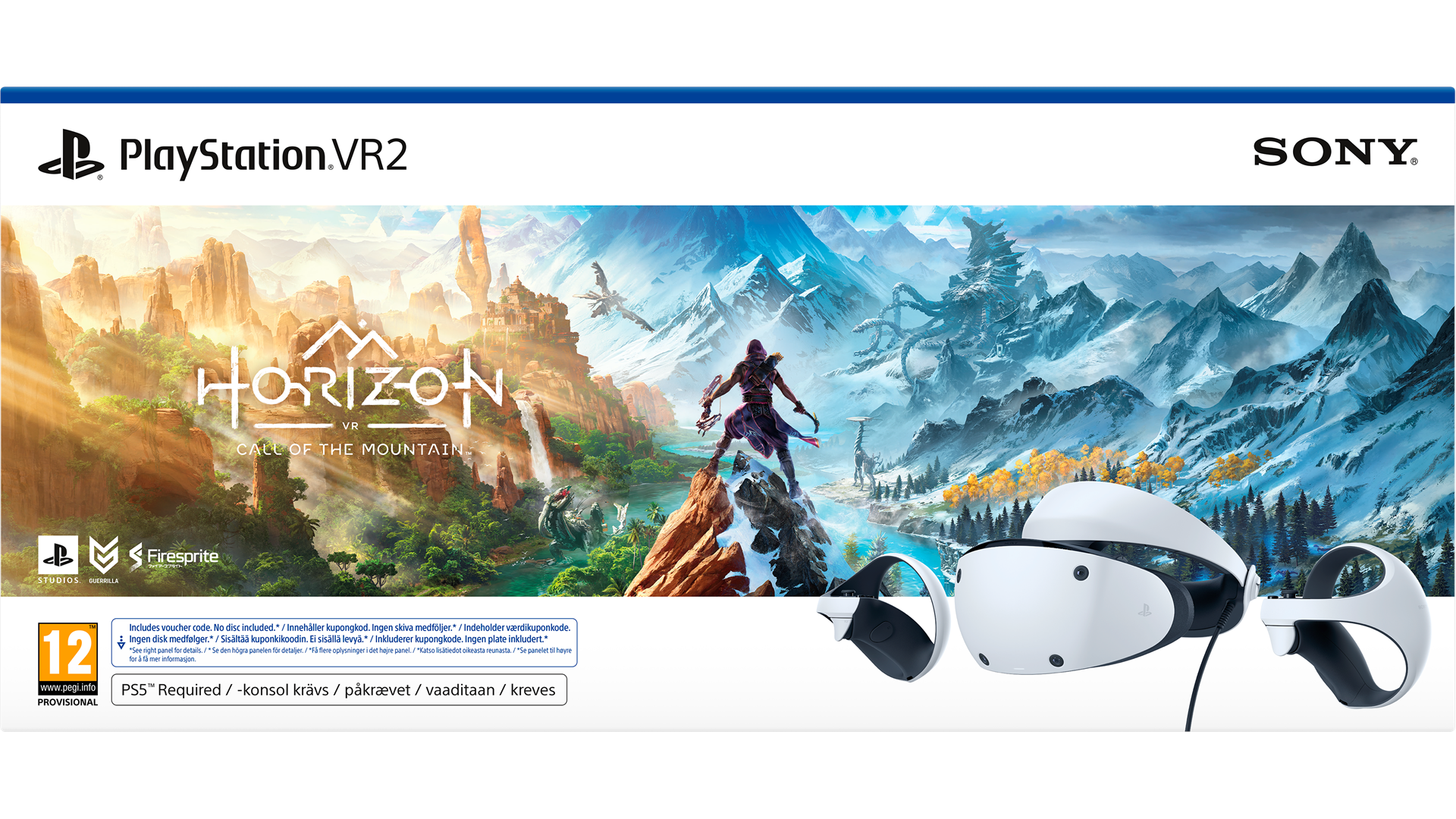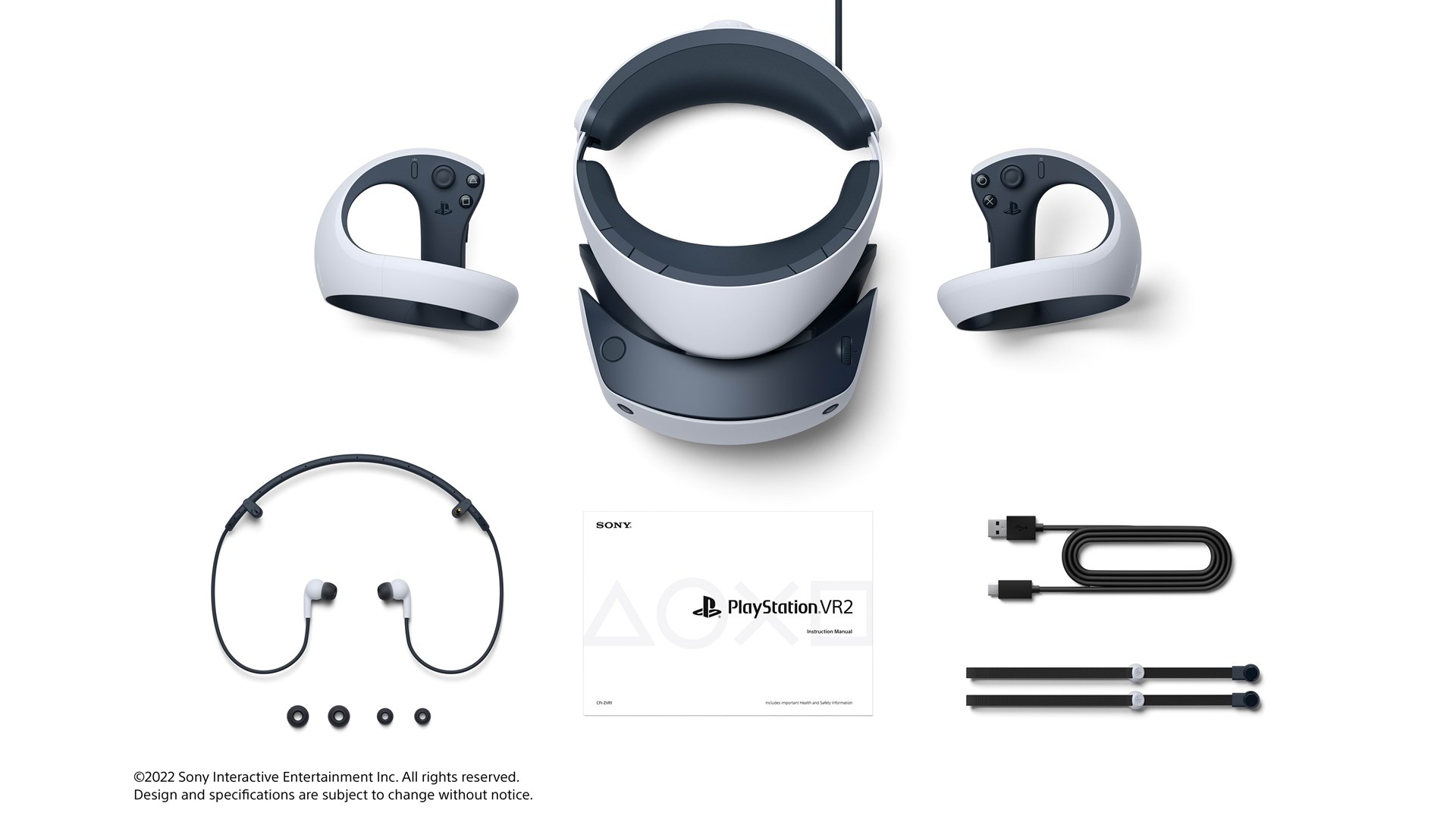 Hovedtelefoner, 2 PlayStation VR2 Sense controllere, 3 par øredele (S, M, L)
