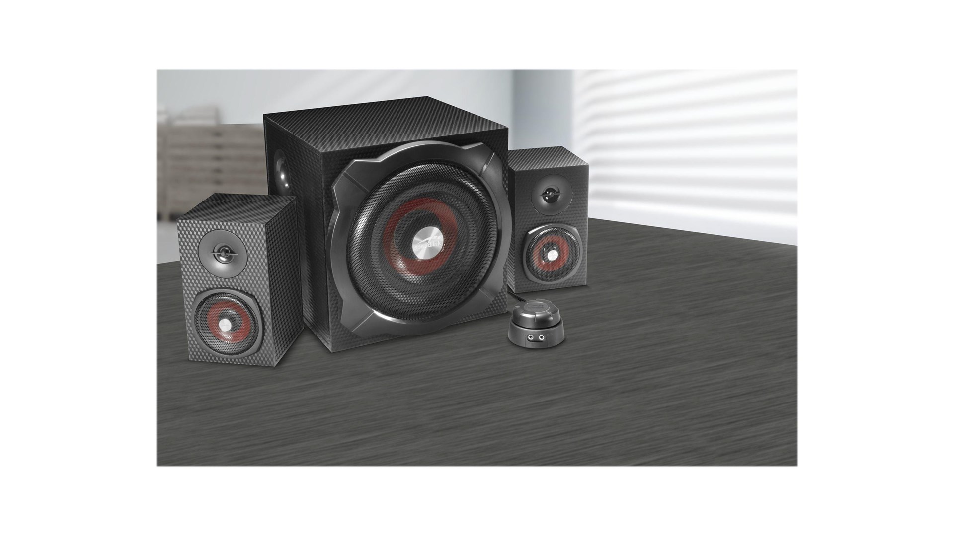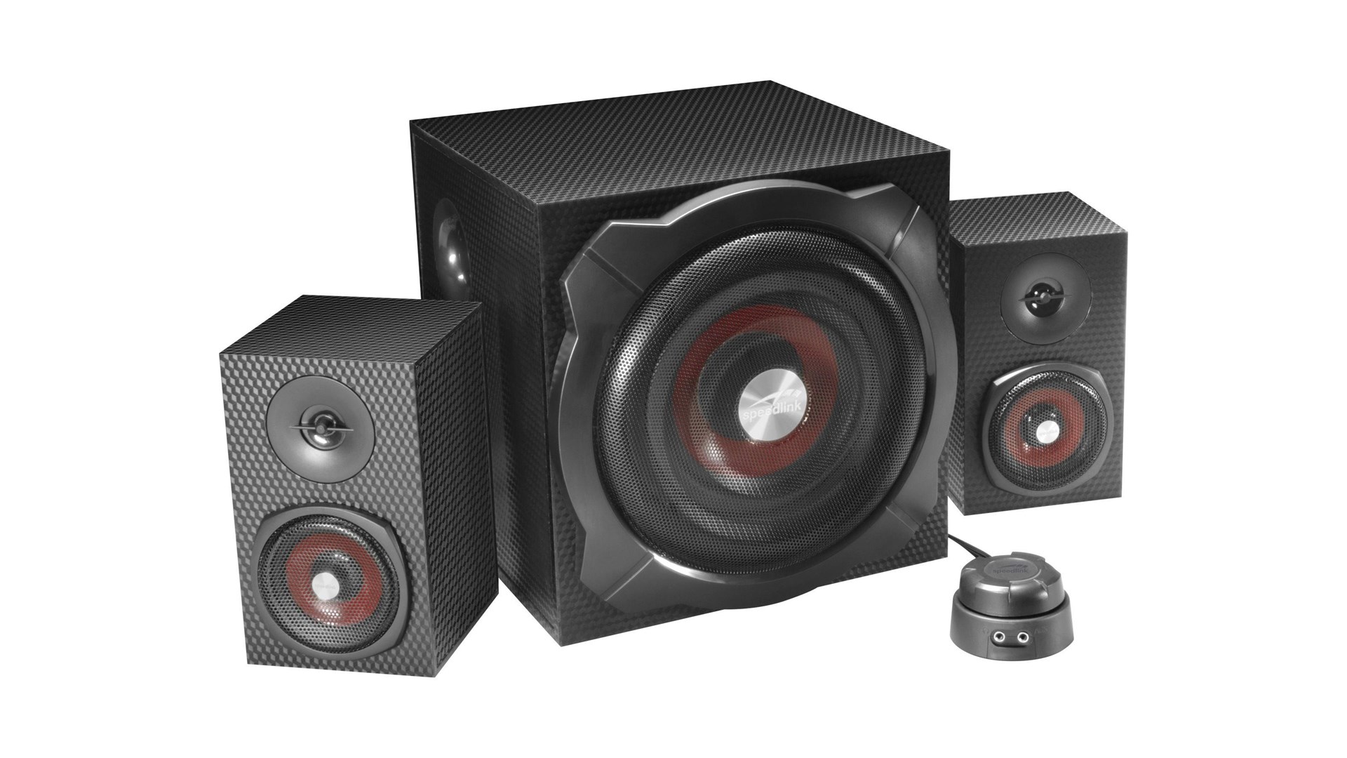 Speed-Link SL-820008-BK er et aktivt 2.1-højttalersystem designet til PC og bærbare computere, der leverer en imponerende lydoplevelse med dybe baslyde og klar diskant. Dette højttalersystem inkluderer to satellithøjtalere og en kraftfuld subwoofer, hvilket sikrer en fyldig og dynamisk lyd, der kan forbedre alt fra musik og film til computerspil.