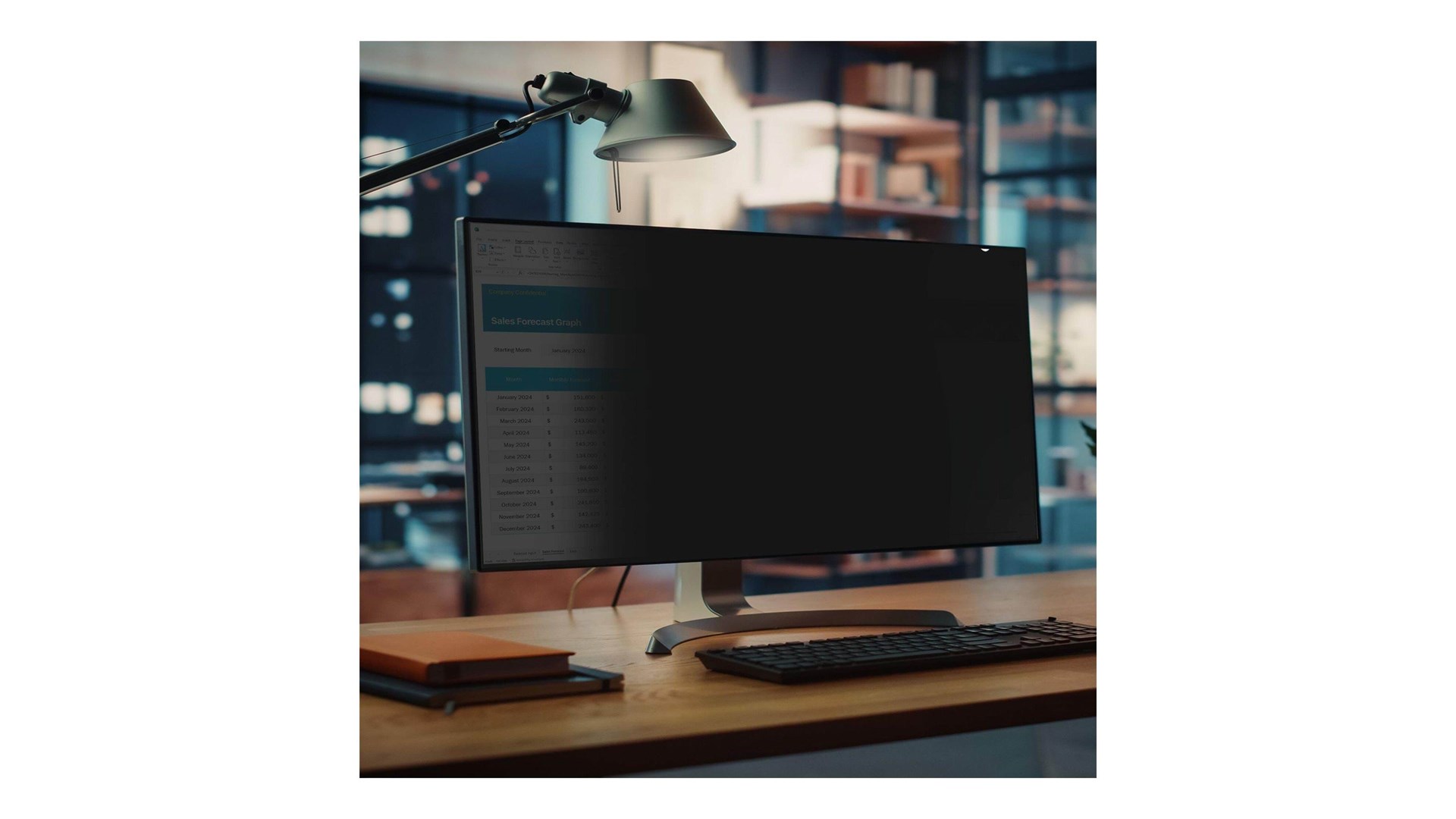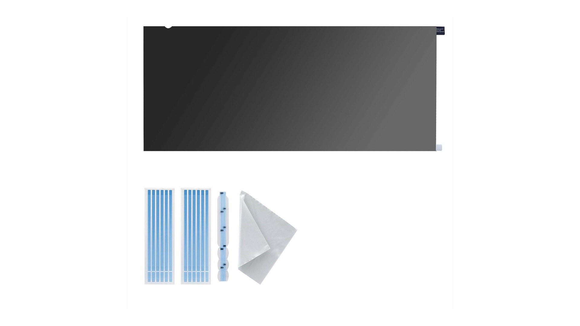 Vandret orientering, compatible with curved screen, microlouver sikkerhedsteknologi, +/- 30° synlig vinkel, 51 % blåt lys-reduktion, 65% light transmittance, fingeraftryksresistent belægning
