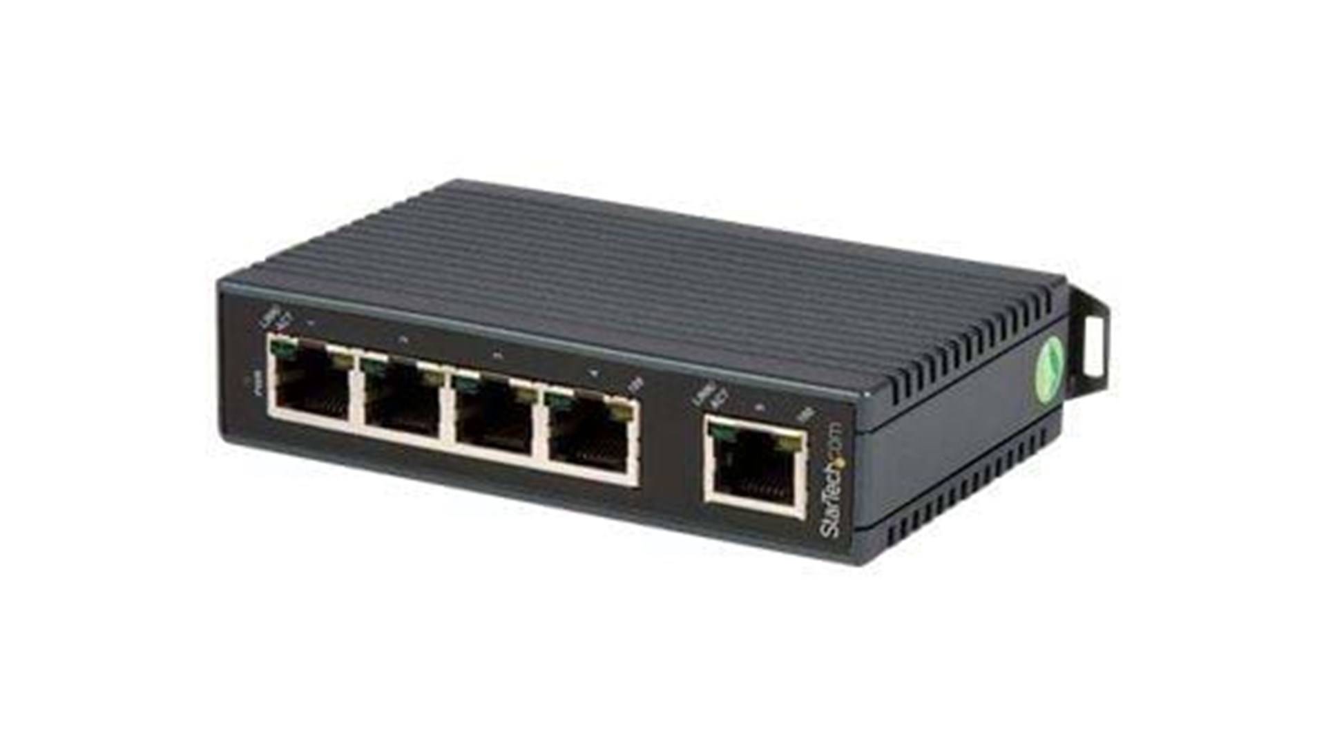 StarTech.com IES5102 er en robust og pålidelig netværksswitch, designet til at opfylde de behov, der typisk findes i industrielle miljøer. Denne ikke-administrerede switch har fem porte, der understøtter Fast Ethernet hastigheder op til 100 Mbps, hvilket gør den ideel til grundlæggende netværksopsætninger i kontorer, fabrikker eller andre erhvervslokaler. Switchens kompakte design muliggør nem installation, mens dens DIN-montering gør det muligt at placere den sikkert på en skinnemonteringsramme, hvilket sparer plads og sikrer en ryddelig opstilling.