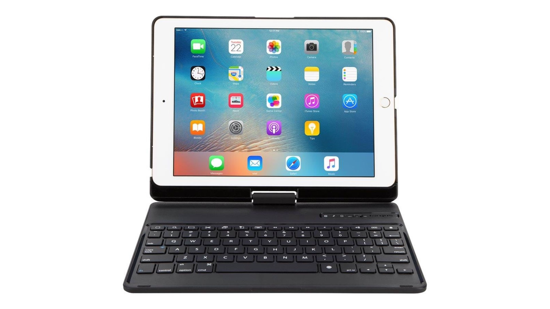 Hård skal, stiftholder, sove/vække-funktion, hængsel roterer 360°, drejer 130°, 10,2"-10,5" tabletsupport