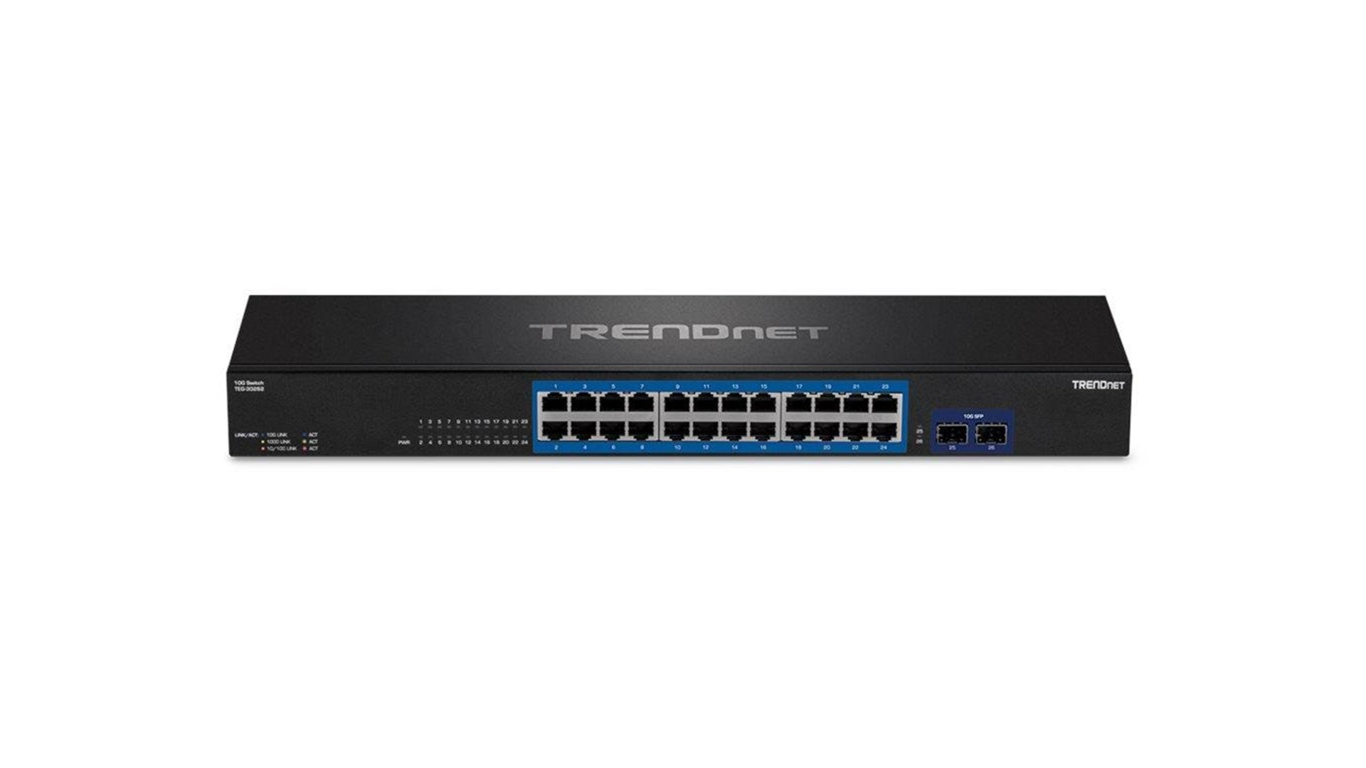 TRENDnet TEG-30262 er en kraftfuld og pålidelig netværksswitch, designet til brug i både erhvervslivet og i større hjemmenetværk. Med sine 26 porte, herunder 24 Gigabit Ethernet-porte og to 10G SFP+-slots, tilbyder denne switch en hastighed på op til 10 Gbps, hvilket sikrer hurtig dataoverførsel og stabil netværksforbindelse. Den er monterbar i rack, og sikrer dermed effektiv pladsudnyttelse i serverrum eller kontormiljøer, hvor plads ofte er en begrænsning.