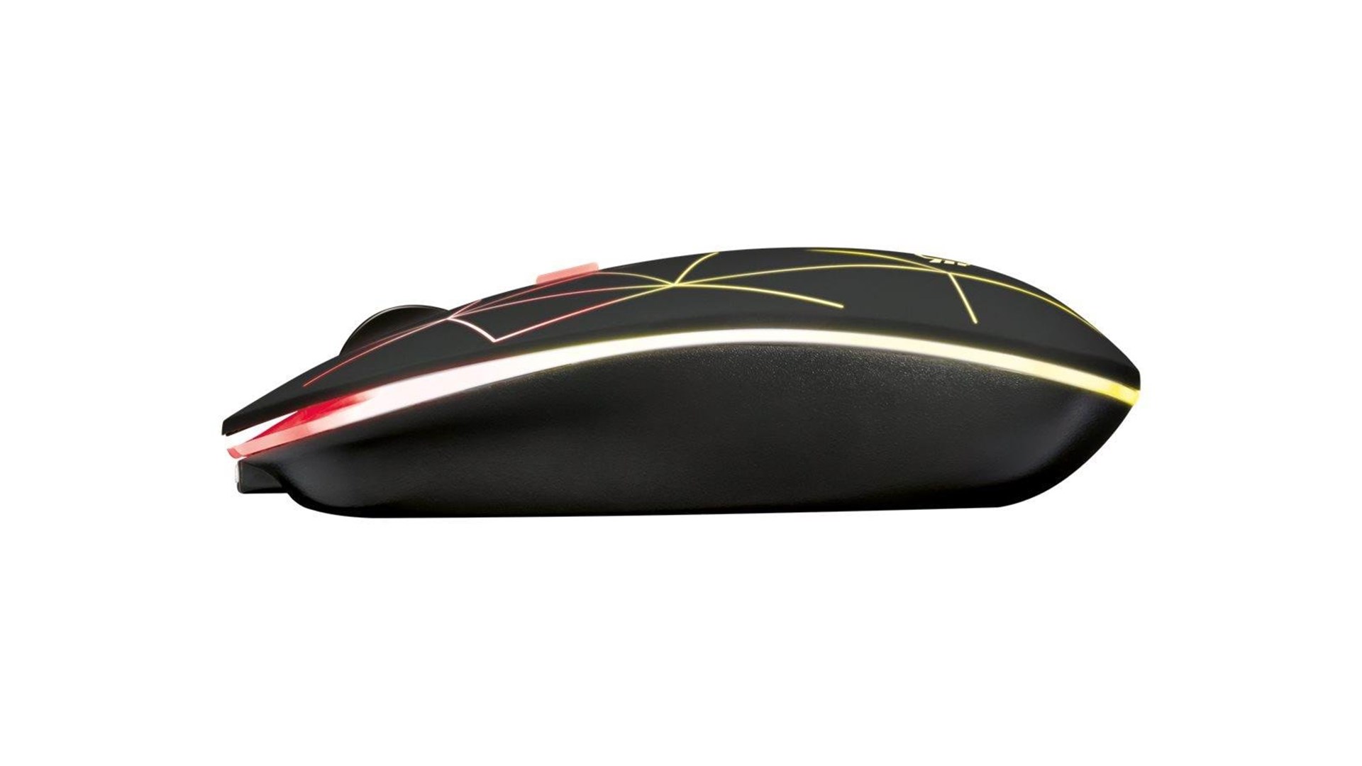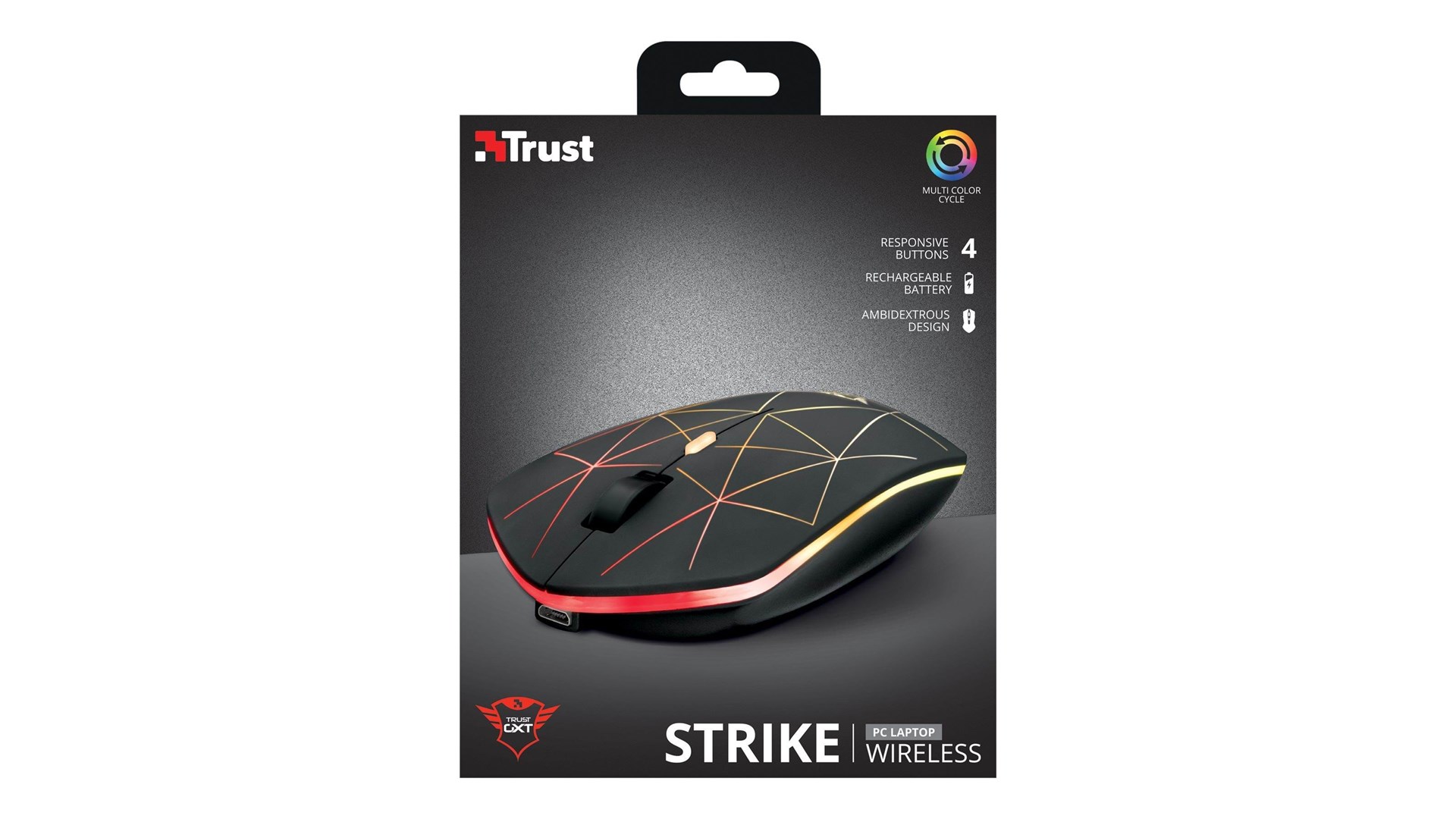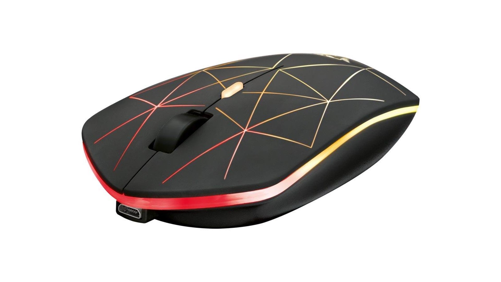 Scrollhjul, yderlag af gummi, flerfarvede LED'er, ambidekstralt design, UPE-fødder, trådløs modtageråbning, justerbar RGB LED-belysning, DPI-kontakt, genopladeligt batteri