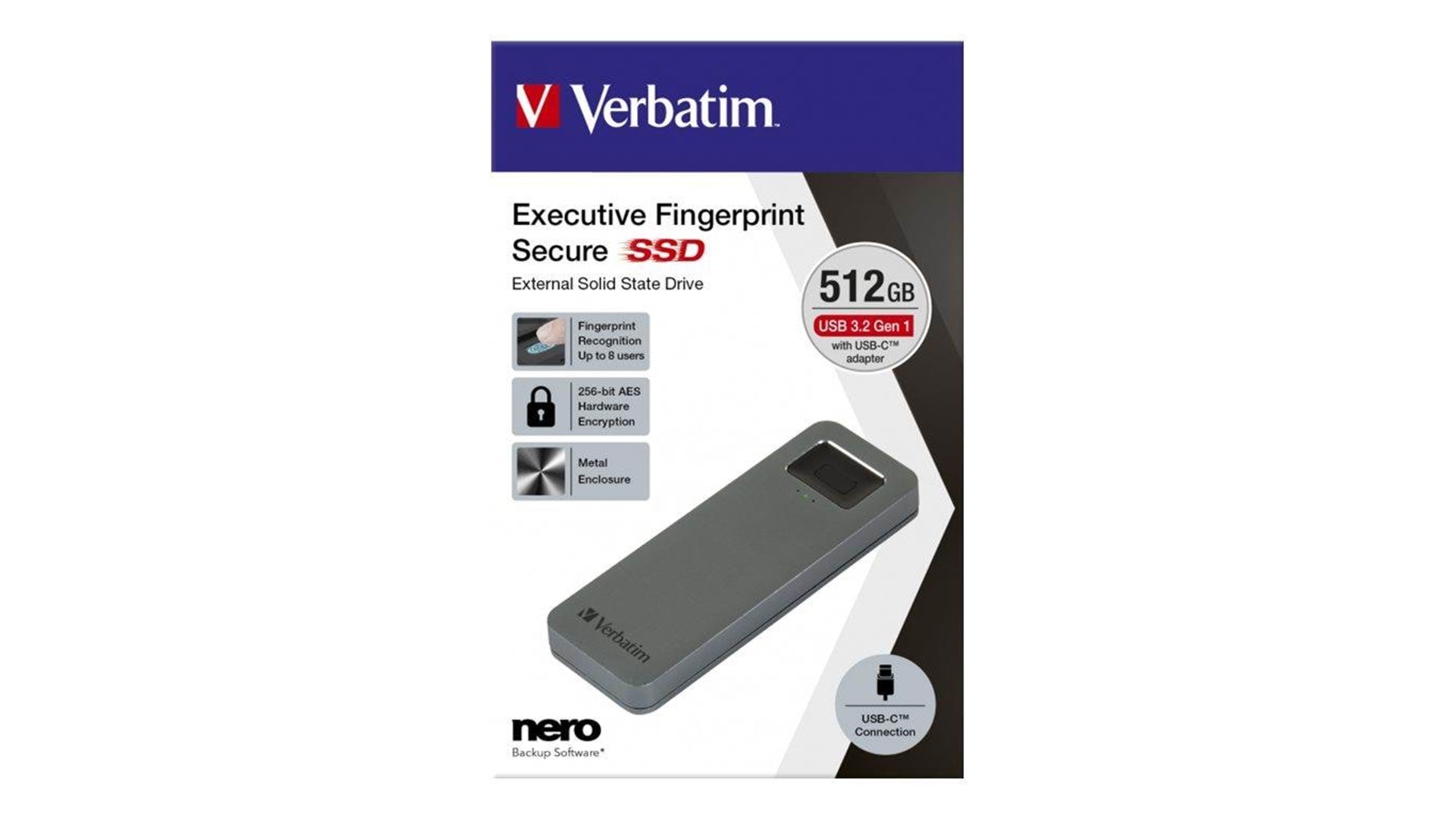 Verbatim 53656, også kendt som Executive Fingerprint Secure SSD, er en ekstern solid state-drev med en imponerende lagringskapacitet på 512 GB. Dette drev er ideelt til både privat og professionelt brug, og leverer lynhurtige dataoverførselshastigheder takket være sin USB 3.2 Gen 1 (USB-C) tilslutning. Med læsehastigheder på op til 324 MB/sek og skrivehastigheder på op til 358 MB/sek, kan du hurtigt og effektivt overføre store mængder data.