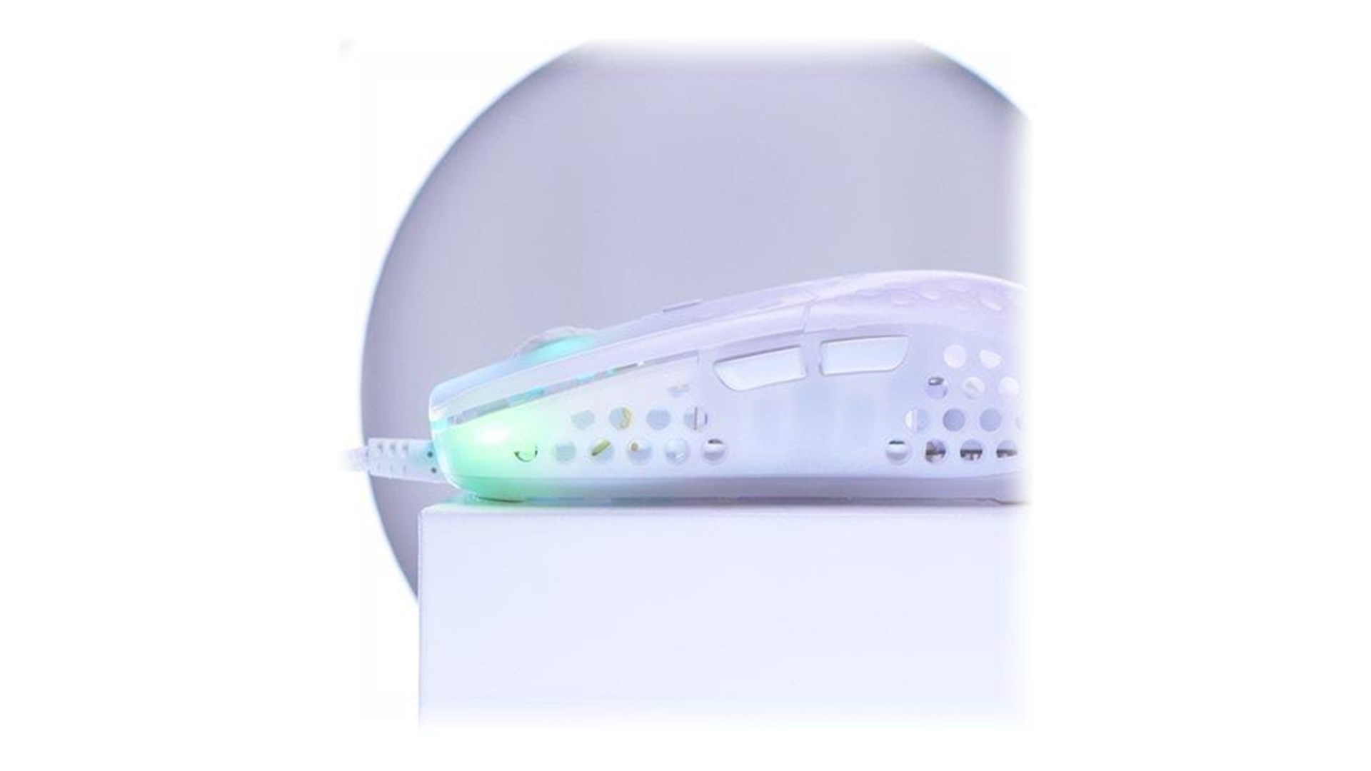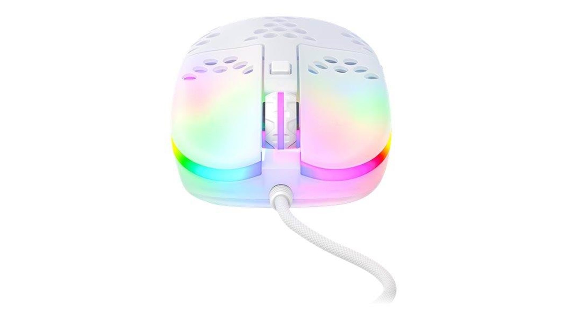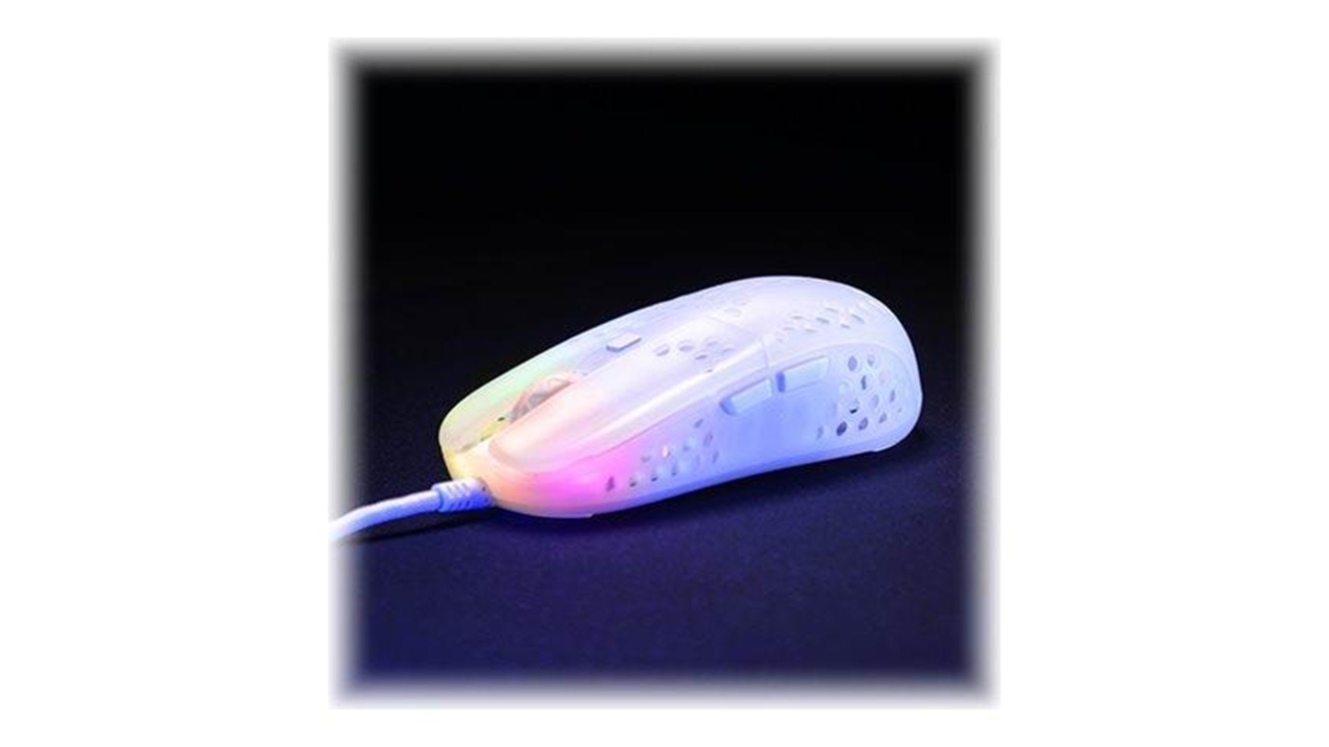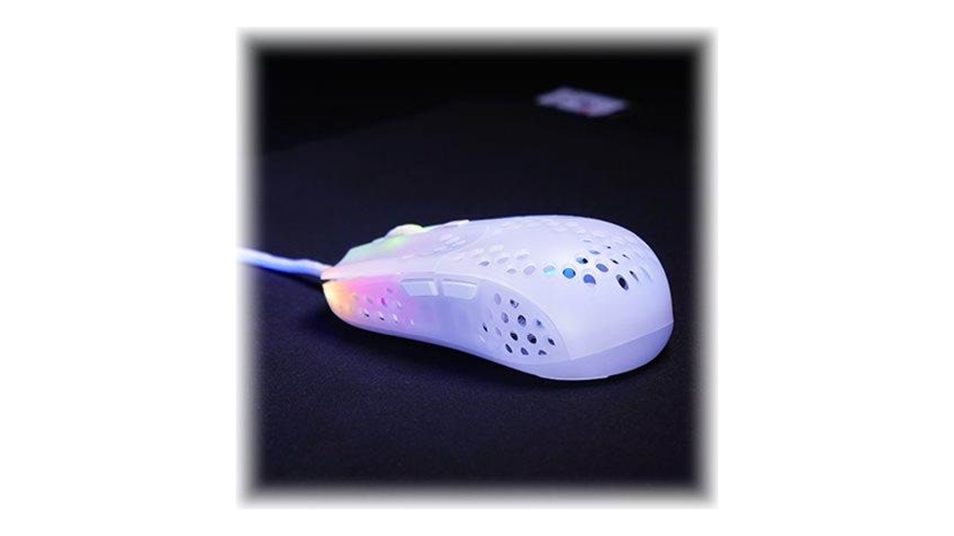 Scrollhjul, polytetrafluoroethylene (PTFE) feet, flettet kabel, ARM 32-bit processor, Pixart 3389 optisk sensor, Kailh GM 8.0 kontakter
