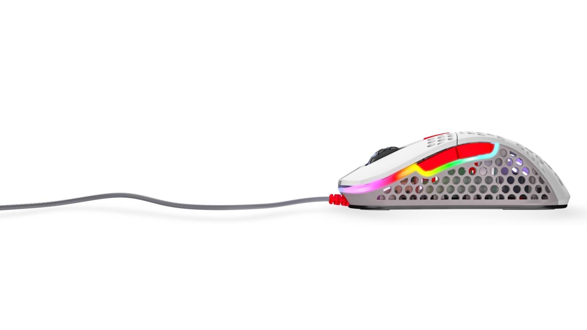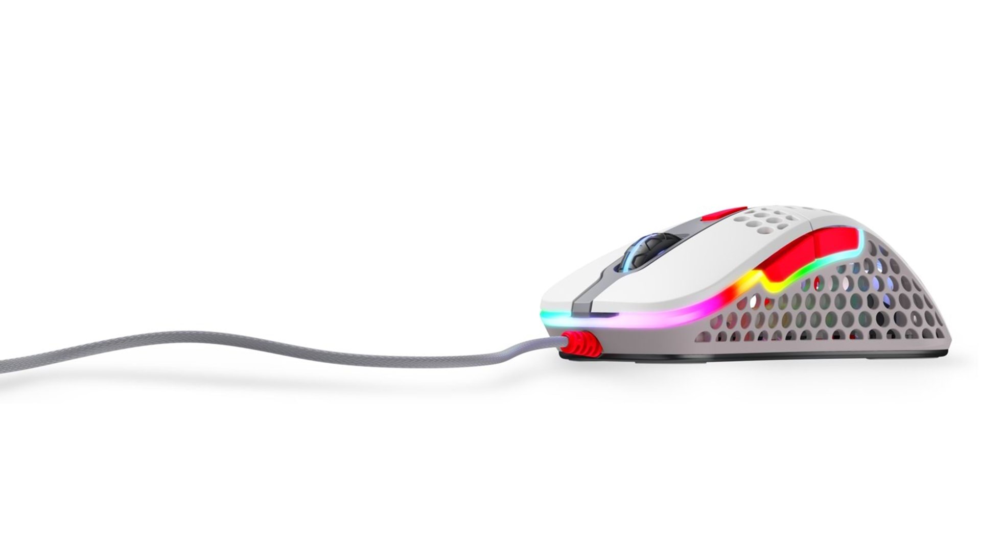 Scrollhjul, polytetrafluoroethylene (PTFE) feet, støvsikker, flettet kabel, OMRON-kontakter, ARM 32-bit processor, justerbar RGB LED-belysning, Pixart 3389 optisk sensor